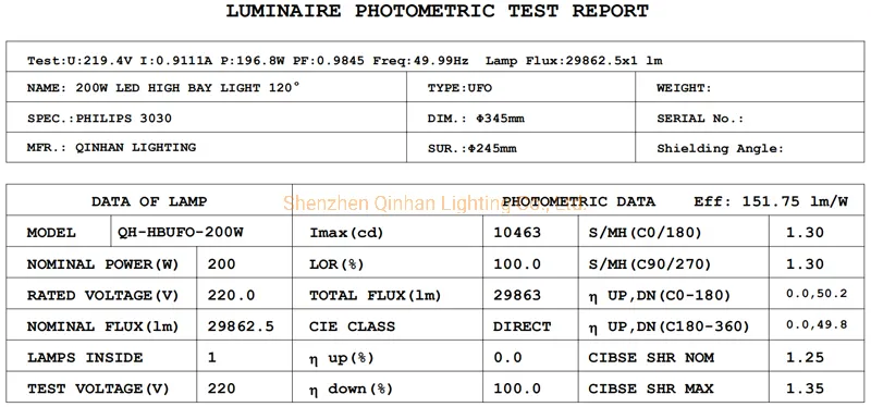 | Model NO. | QH-HBUFO-200W |